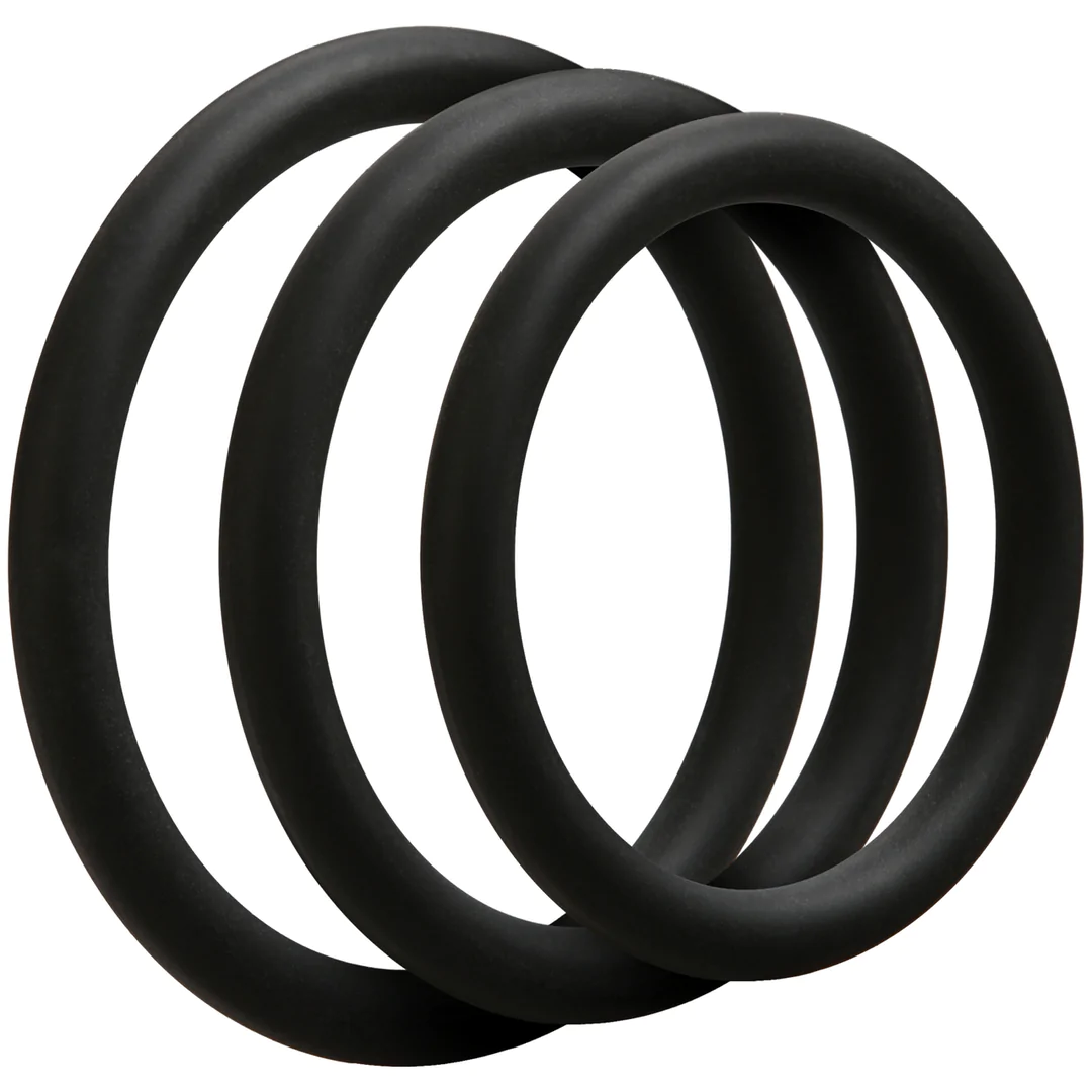 The Thin Cockring Set OptiMALE está diseñado para optimizar tu rendimiento y potenciar la experiencia sexual. Este juego incluye tres anillos en C delgados, fabricados en silicona de alta calidad, que ofrecen un ajuste cómodo, seguro y eficaz.