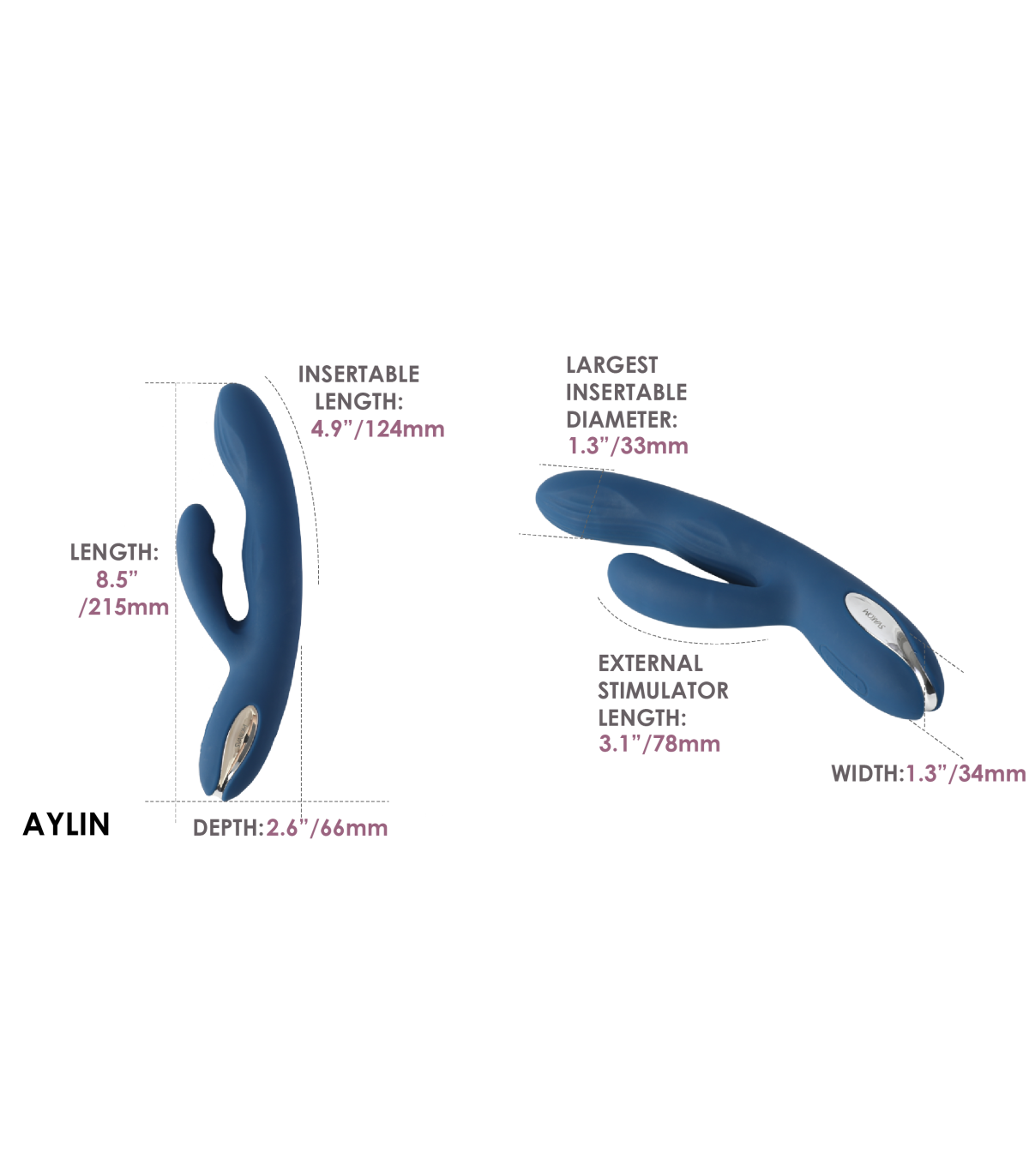 Fabricado en silicona ultrasuave y segura para el cuerpo, Aylin se desliza delicadamente sobre la piel ofreciendo una experiencia cómoda, elegante y altamente placentera.