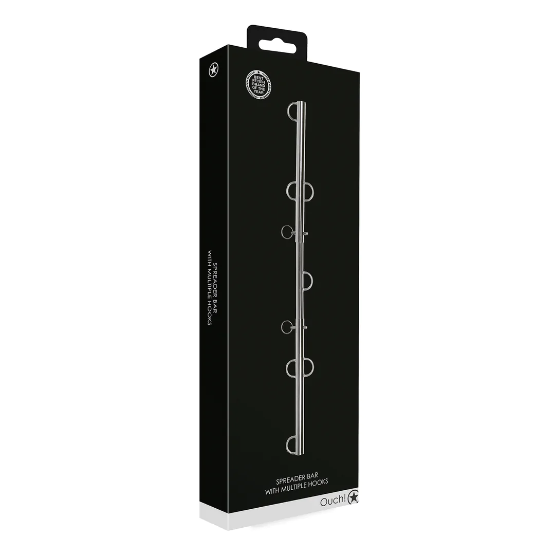 Barra Separadora Ajustable con Múltiples Ganchos – Spreader Bar BDSM Plateada