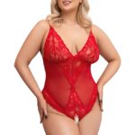 Body Rojo Transparente con Entrepierna Abierta – Cottelli Curves