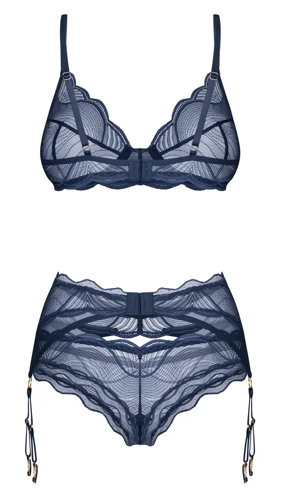 Conjunto Curvy Nightly Blue con Sujetador Aros, Liguero y Tanga – Obsessive