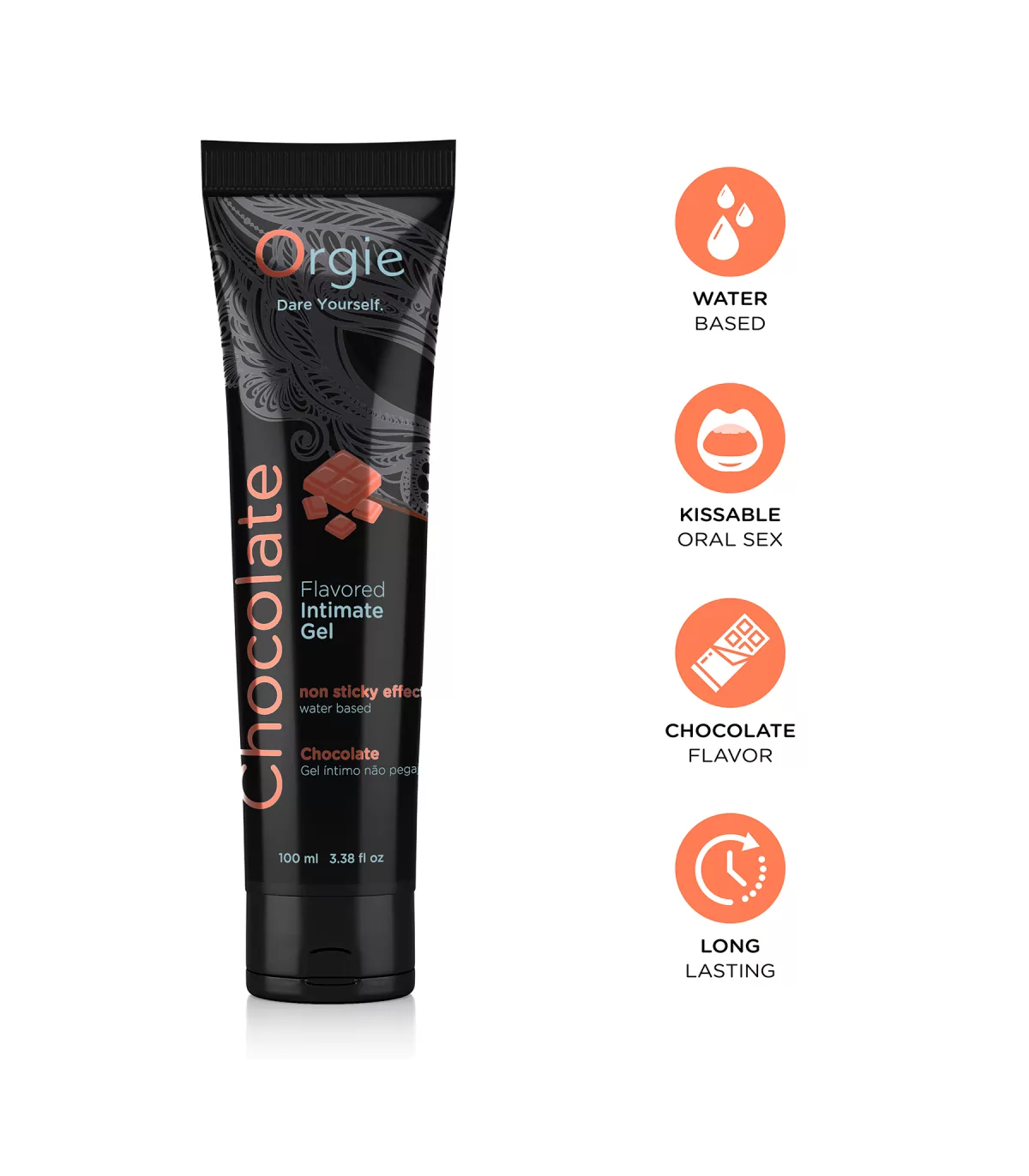 Disfruta de placer y sabor con el Lubricante Chocolate 100 ml, un gel íntimo a base de agua besable y seguro para el sexo oral.