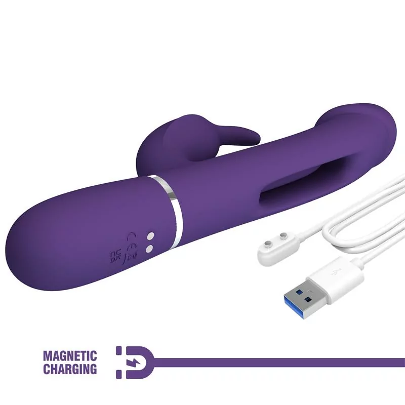 Descubre nuevas sensaciones con el PrettyLove Kampas, un vibrador avanzado diseñado para estimular tu clítoris y punto G simultáneamente. Su lengua oscilante central añade un nivel extra de placer mientras los dos motores independientes permiten infinitas combinaciones de vibración.