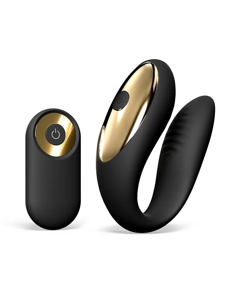 Fabricado en silicona ultra blanda y ABS con acabado gold, su diseño es suave, flexible y ergonómico, adaptándose al cuerpo para una experiencia cómoda incluso en usos prolongados. Incorpora dos motores independientes, uno para la estimulación del punto G y otro para el clítoris, permitiendo un placer completo y envolvente.